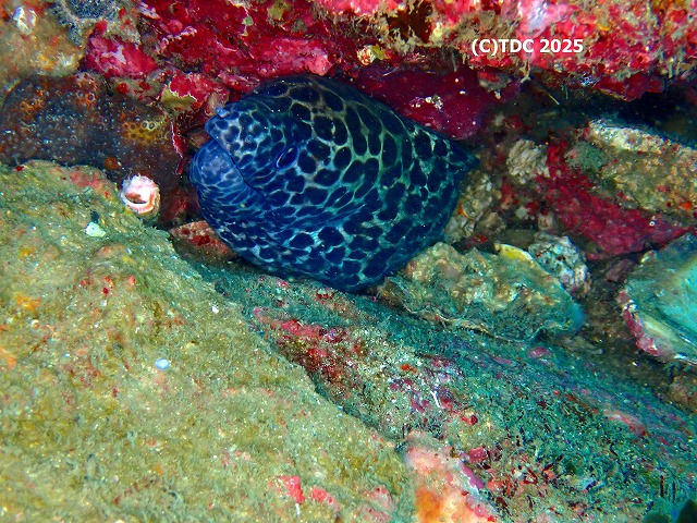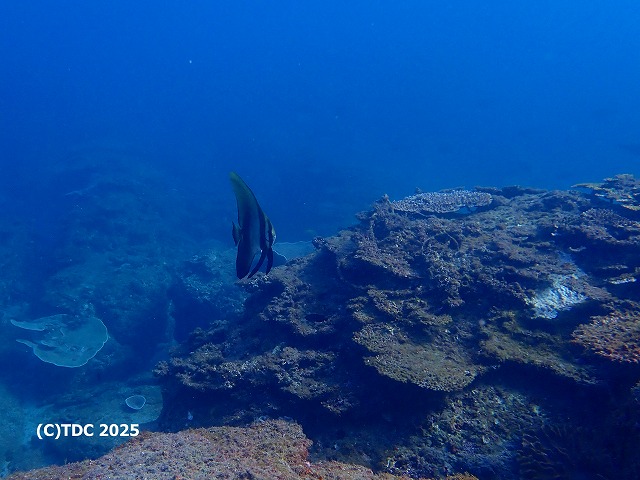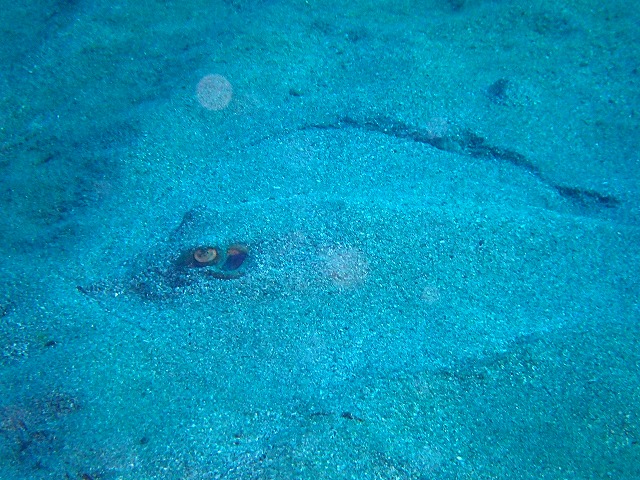 ホンバエに暮らしている大きなマダラエイがエントリー直後にこちらに向かってくるので迫力がありました!