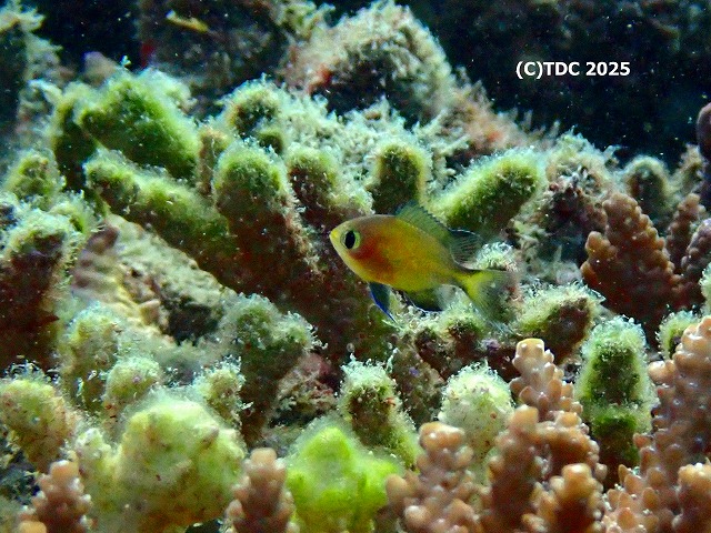 とっても小さいスズメダイ、かわいい!多分ヒレグロスズメダイです!