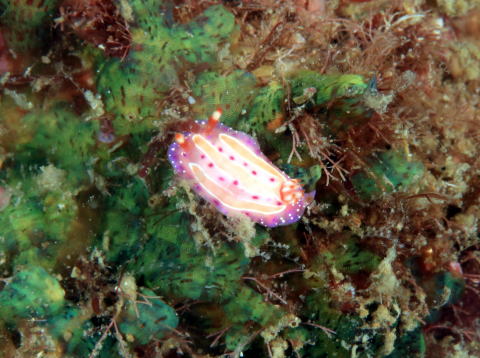 ウミウシではレアものが現れました。イチゴミルクウミウシとクチバイロウミウシが見られました。