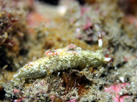 | 2020年 2月 2日(日)「また黒潮が!」 ポイント:ワレ回廊 水温:20℃ 気温: 8℃ 透明度:15m♪ キンメモドキ村 水温:19℃ 気温:12℃ 透明度:10m ぽかぽか陽気のいい日曜日でした。外洋は黒潮の影響で透明度も水温もアップでした。久しぶりのウミウシオンリーダイブ。外洋は先日の大時化で地形も変わっていてウミウシもなんだかリセット気味。。。でも2ダイブで18種類。まずまずですな。クロフチウミコチョウ、エンビキセワタ、キャラメルウミウシ、カグヤヒメウミウシなどなどでした。 手前は人差し指。クロフチウミコチョウ ( Photo by 130Y ) エンビキセワタ ( Photo by 130Y ) シラヒメウミウシ ( Photo by 130Y ) |
