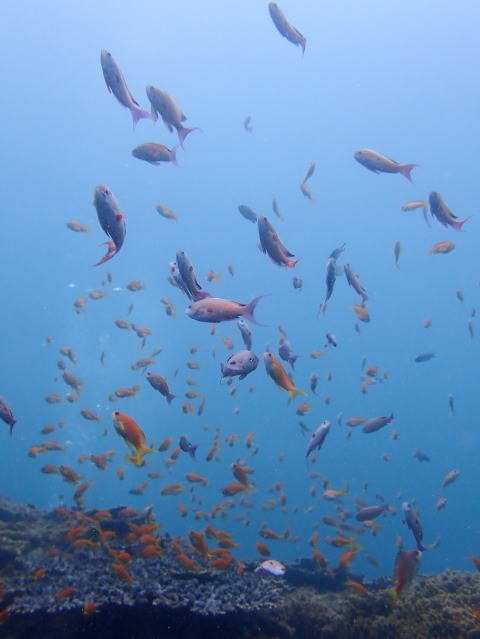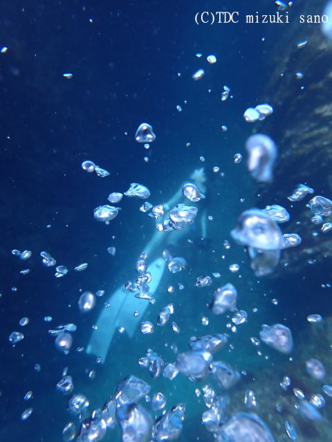 今日は外洋に出て海底に沈んだ奇岩をスキンダイビングで見て頂きました!途中、キビナゴを狙うカンパチやブリにも出会いステキなシーンとなりました。