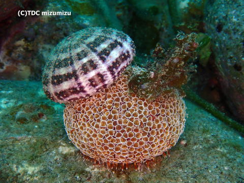 かわいい貝殻を宿にしてました。ツマジロサンゴヤドカリ。
