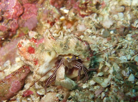 アクギガイ科のレイシガイダマシなどを宿にする。