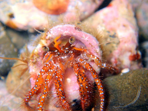 イトマキボラやサザエ、ホラガイの貝を宿にする。