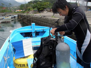 天気予報では今日は「曇り」だったはずなのに朝から結構の雨×雨××デシタ。ウエットスーツに着替えると雨はなんら問題なし!となり2本ガッツリ潜ってきました。海の中は太陽がないため暗かったのですが、昨日より透視度は良くなっていましたよv(^-^)