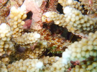 午前中のチェックでは、希少なサンゴモエビがペアで登場!!しかも2個体とも4、5cmほどある大きな個体で、見ごたえがありました♪やはりサンゴが元気な所には色々な生物が見つかりますね^