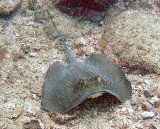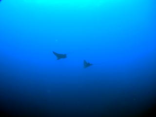 すると、1本目エントリー直後、マダラトビエイがペアで遊泳中♪その後すぐにもう1個体見られました。トップの根にはメジナとキンギョハナダイ、キホシスズメダイが乱舞していて、まるで水族館の水槽に入っているかのような印象ですよ☆