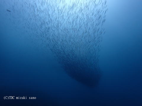 キビナゴの群れも圧巻です!それを狙うカンパチも見られました。ソメワケヤッコも2匹が仲良しです。
