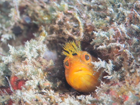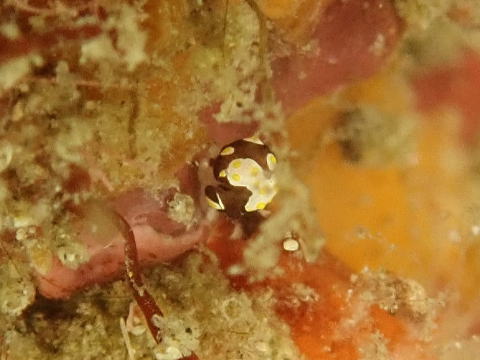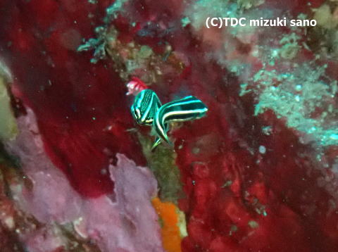 ウミウシはまだ小さいですけど、ぼちぼち見られてます。クロメガネスズメダイなど幼魚も見られてますね。