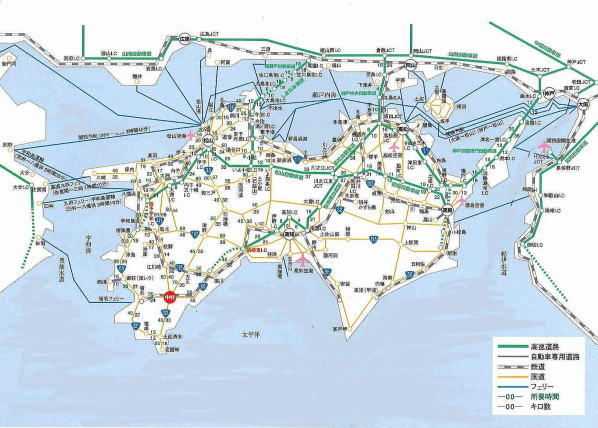 松山自動車道 松山IC〜津島岩松IC、国道56号〜321号で、約3時間